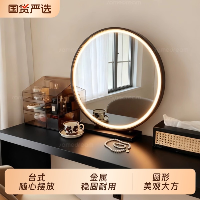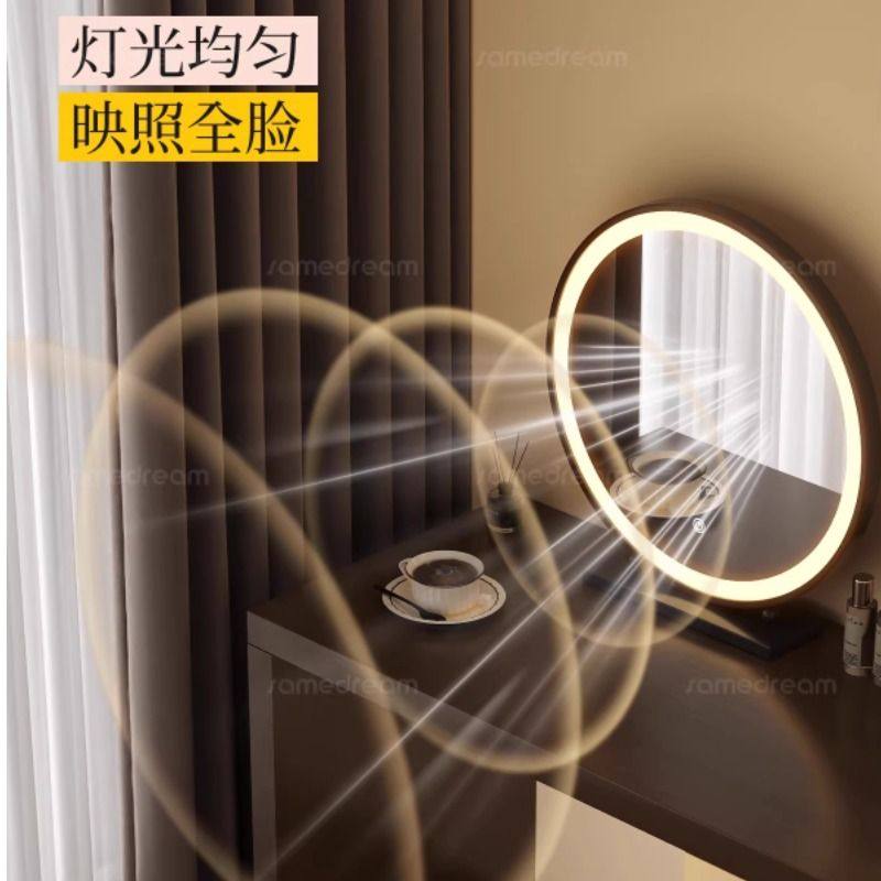 轻奢化妆镜台式桌面LED带灯圆形智能梳妆镜卧室高级梳妆台大镜子