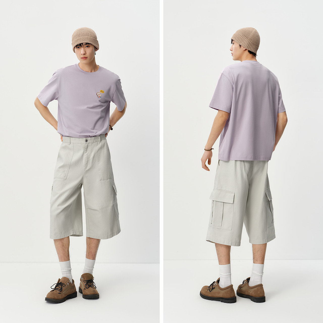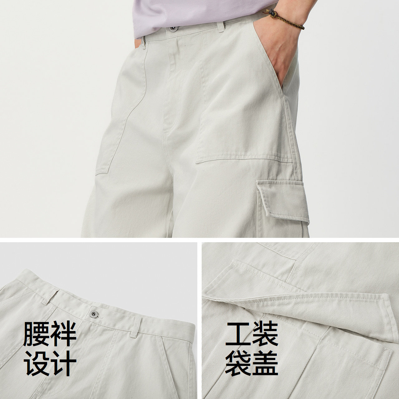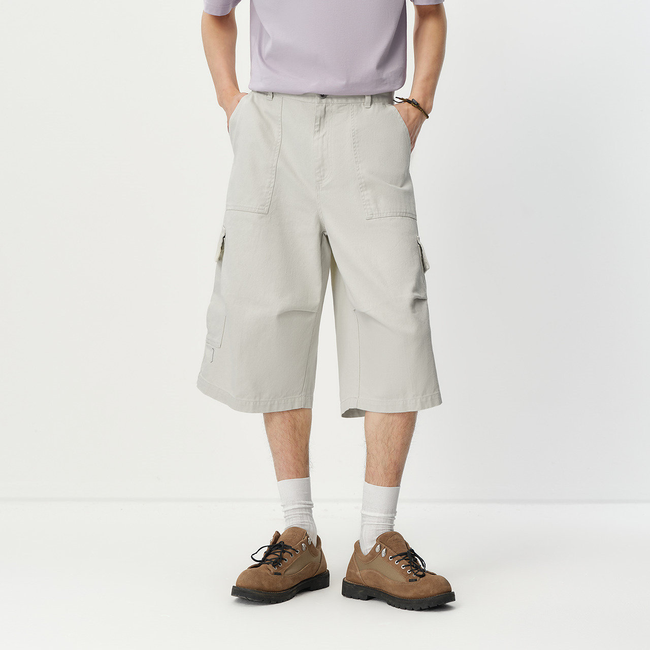 纯棉工装七分裤 宽松阔腿短裤