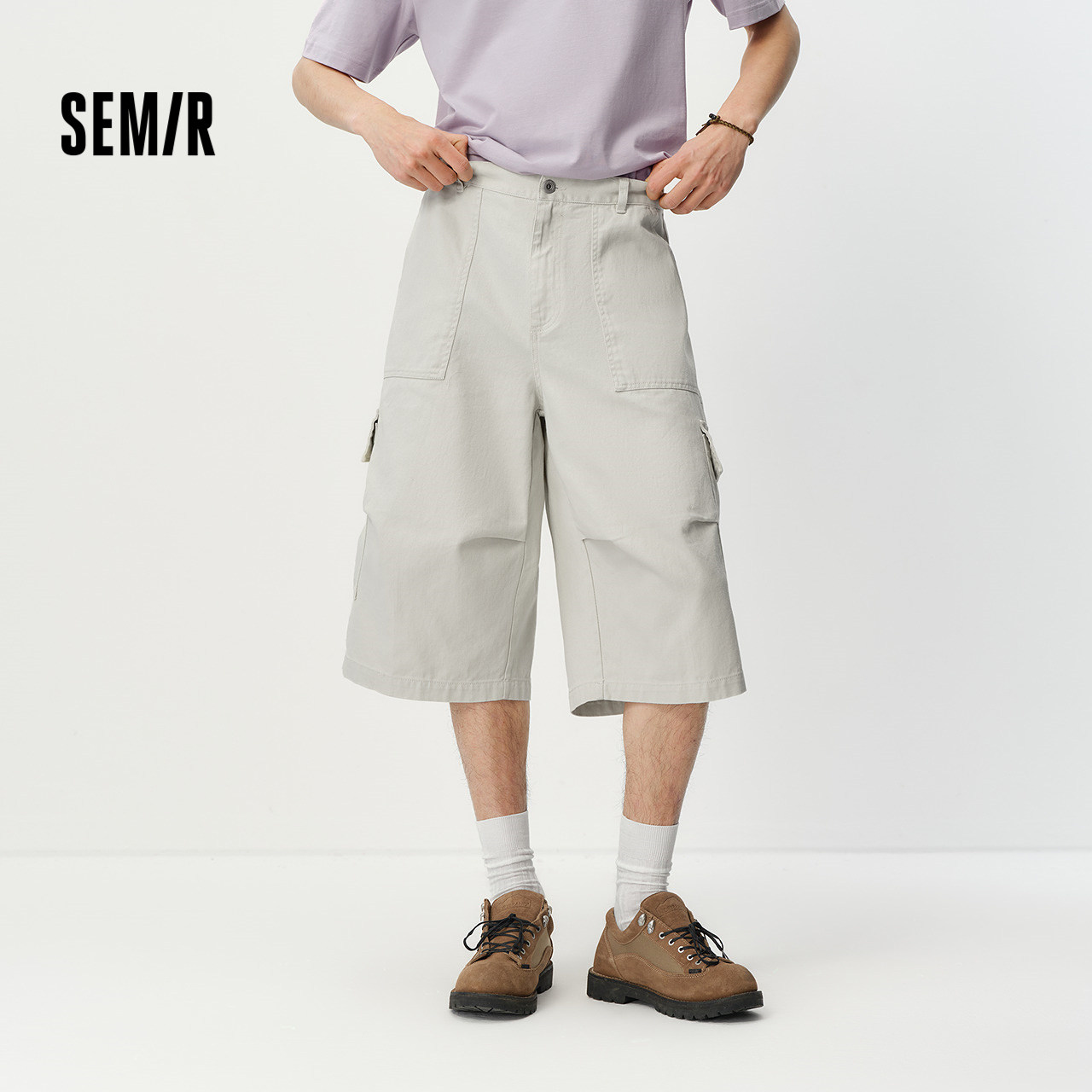 森马休闲裤男夏季纯棉工装风廓形七分短裤2026新款宽松高街阔腿裤