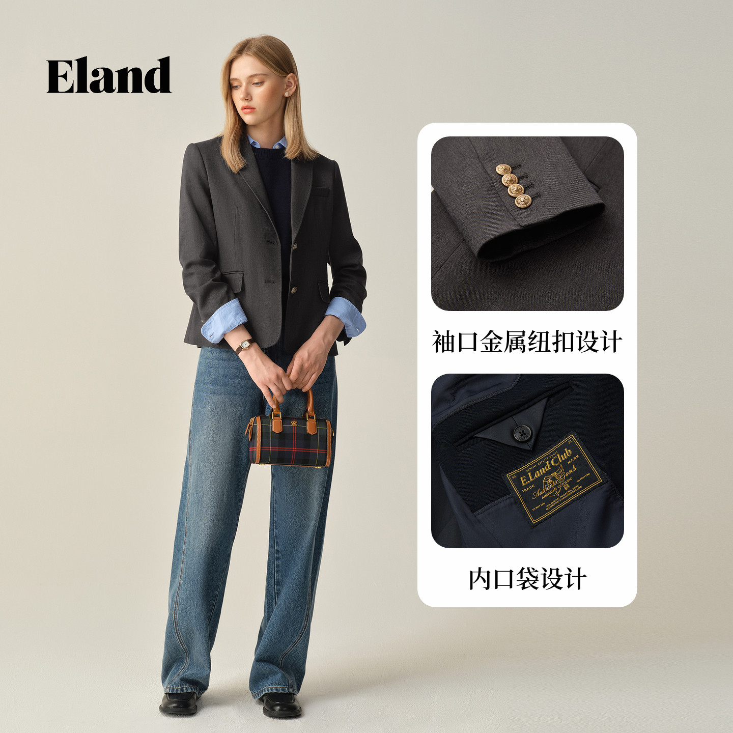Eland衣恋西装女气质通勤两粒扣半里设计加厚外套2025冬季新款