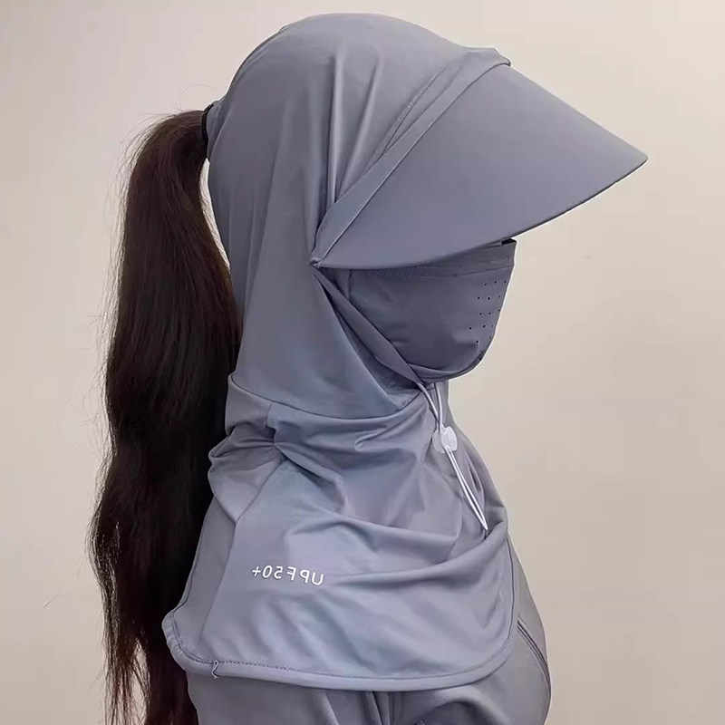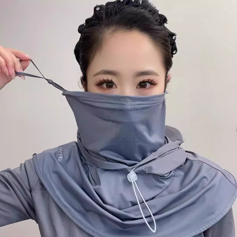防晒面罩女帽子一体护颈全脸防紫外线头盔骑行头套罩围脖冰丝口罩