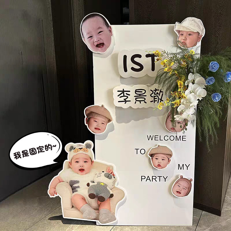 宝宝可摇晃生日派对装扮布置套餐拍照照片墙纸欢迎牌周岁生日装饰
