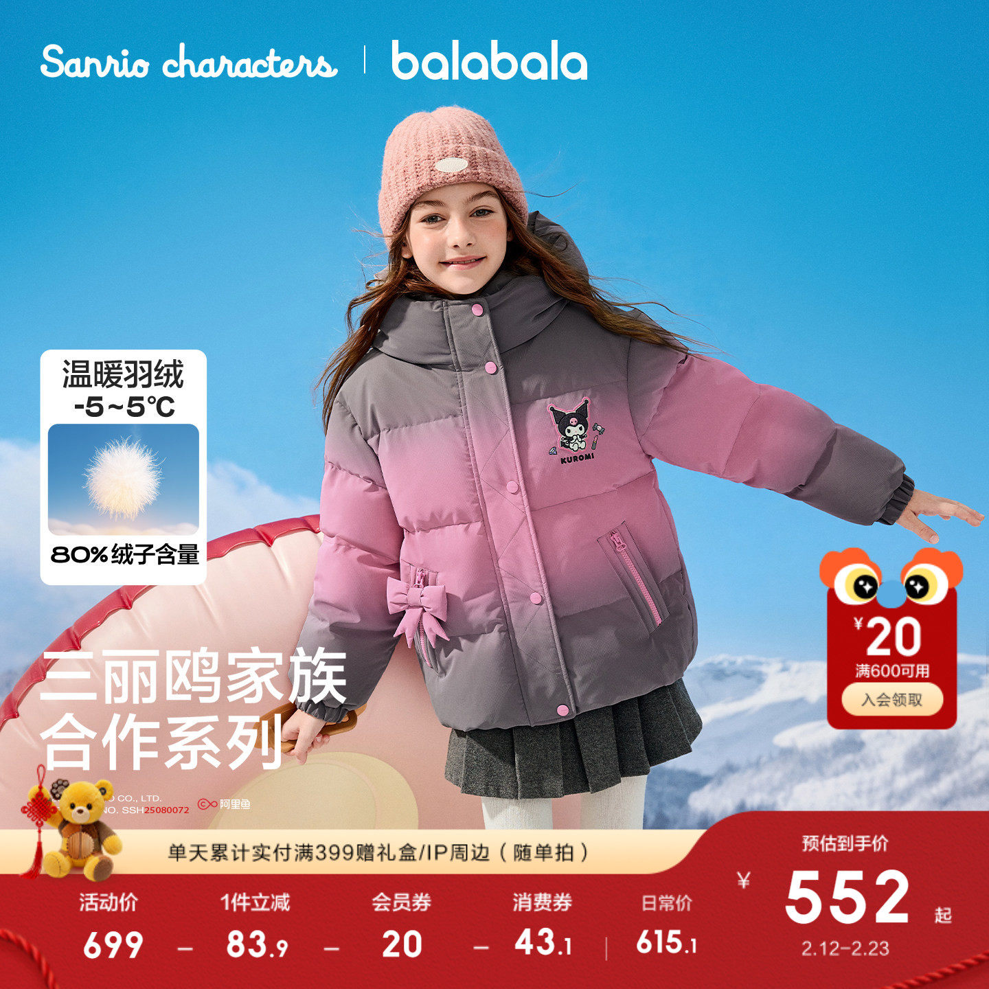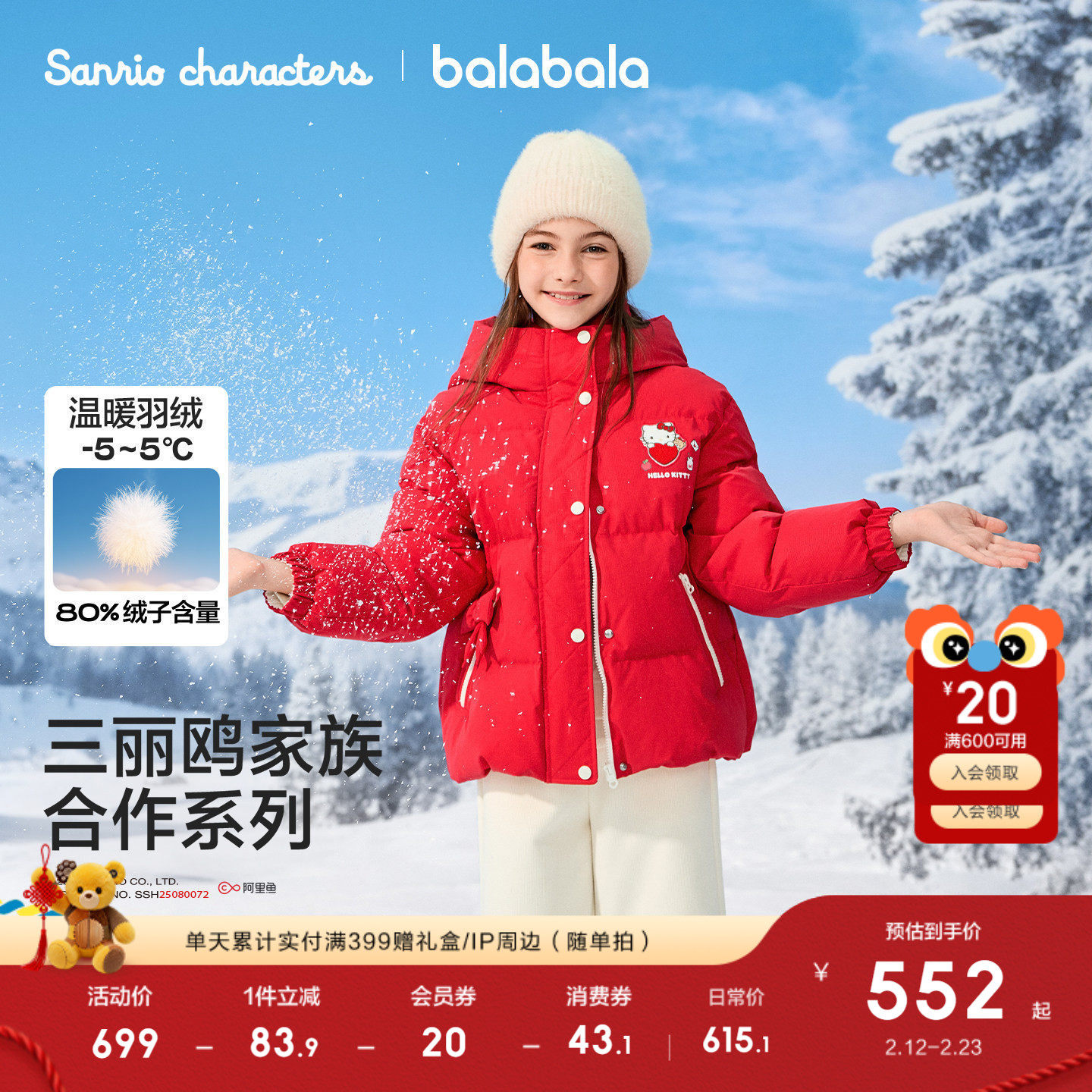 【三丽鸥IP】巴拉巴拉童装儿童羽绒服女童2025年外套红色拜年服厚