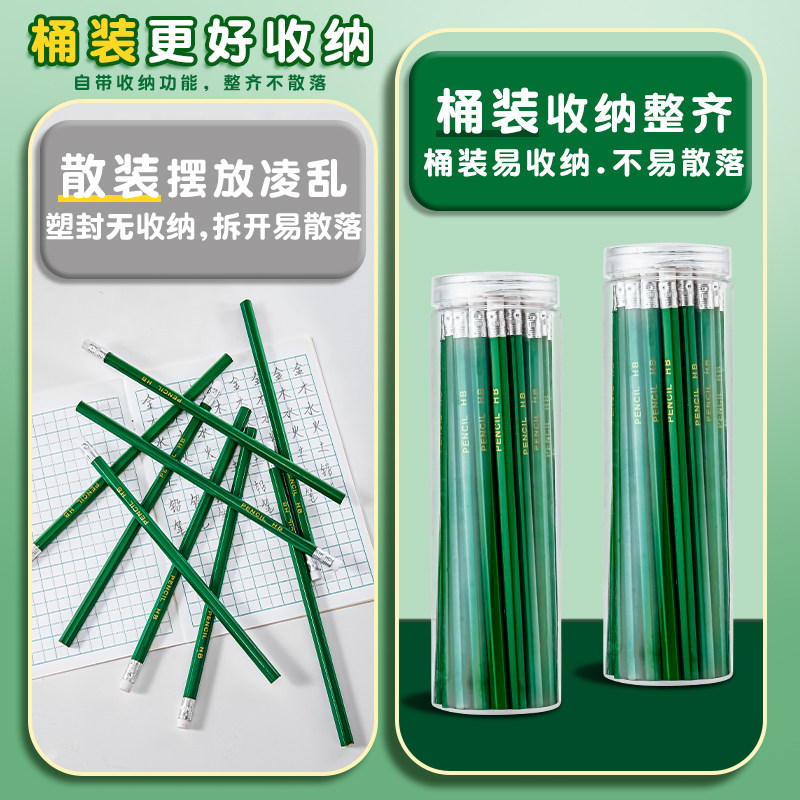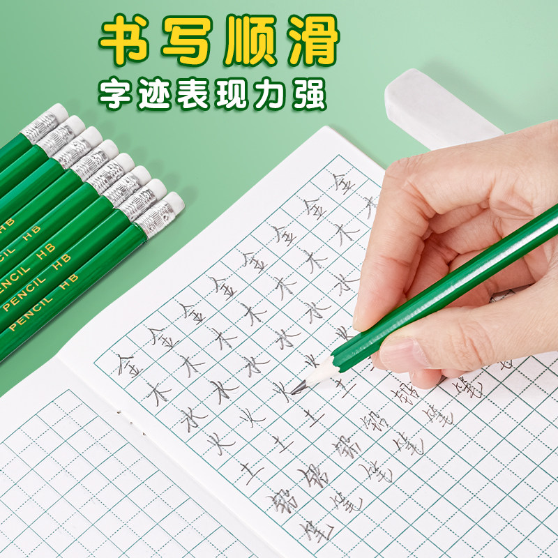 hb铅笔小学生专用一二年级写字用幼儿园儿童初学者练字绘画带橡皮擦头小绿杆红杆六角杆文具