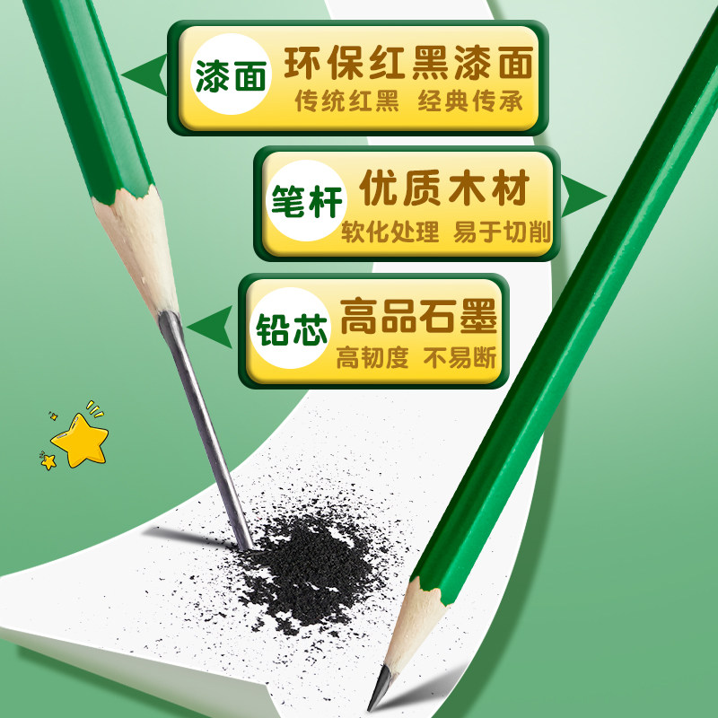 小学生铅笔2b铅笔考试专用hb书写铅笔无铅毒绿色幼儿园儿童学习用橡皮不易断原木硬度开学铅芯