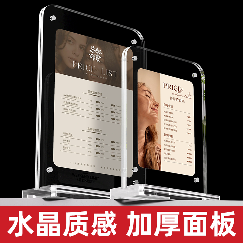 美容院价目表展示牌圆角亚克力立牌医美价格表强磁台牌台卡水晶餐桌价格牌菜单广告牌定制桌牌小牌子a4a5桌卡
