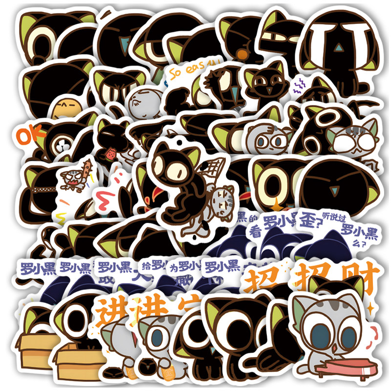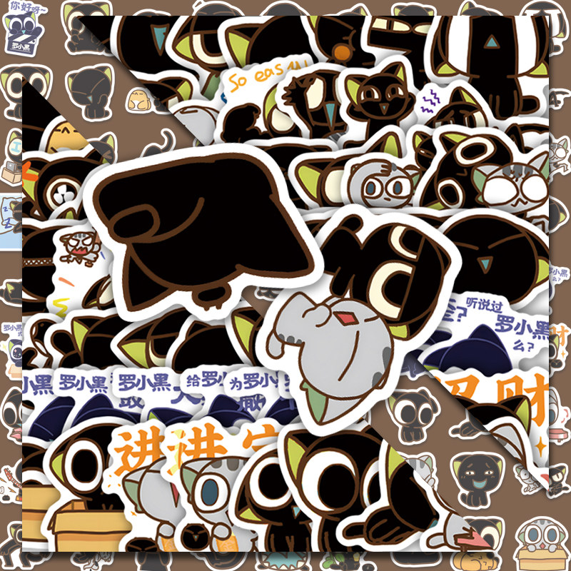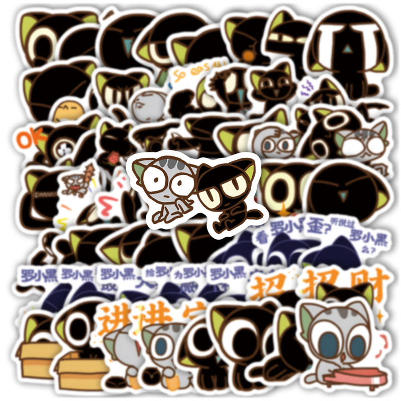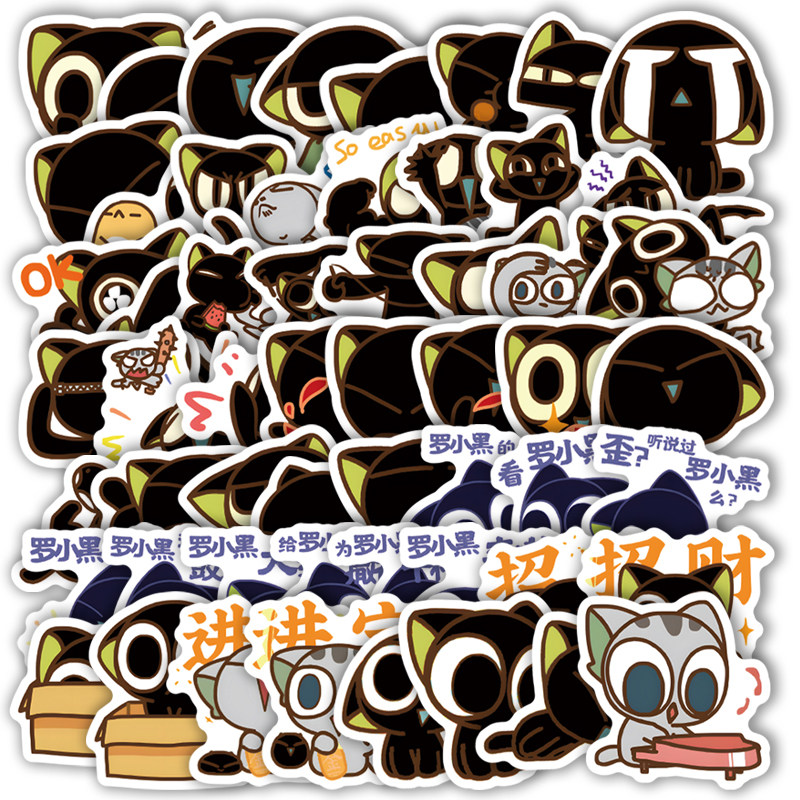 罗小黑贴纸可爱卡通小图案不干胶自粘桌面遮丑行李箱diy防水贴画