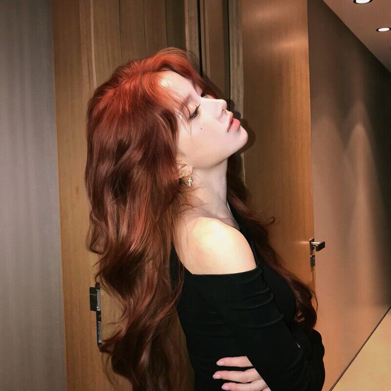 假发全头套女仿真发自然无痕隐形红色蓬松大波浪长卷发假发套