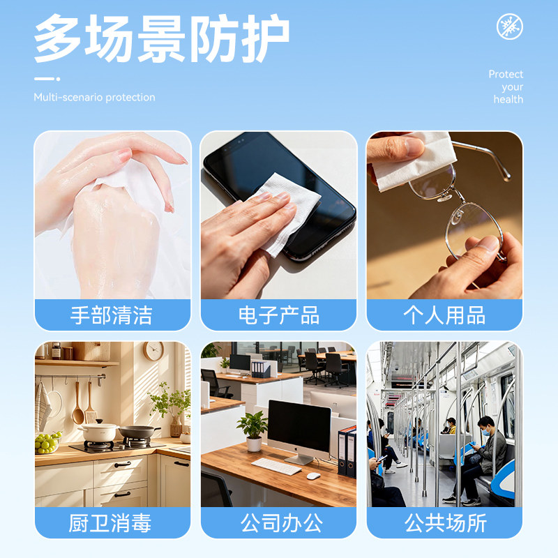 卫生消毒湿巾含次氯酸健身房儿童杀菌湿纸巾50片独立包装马桶便携
