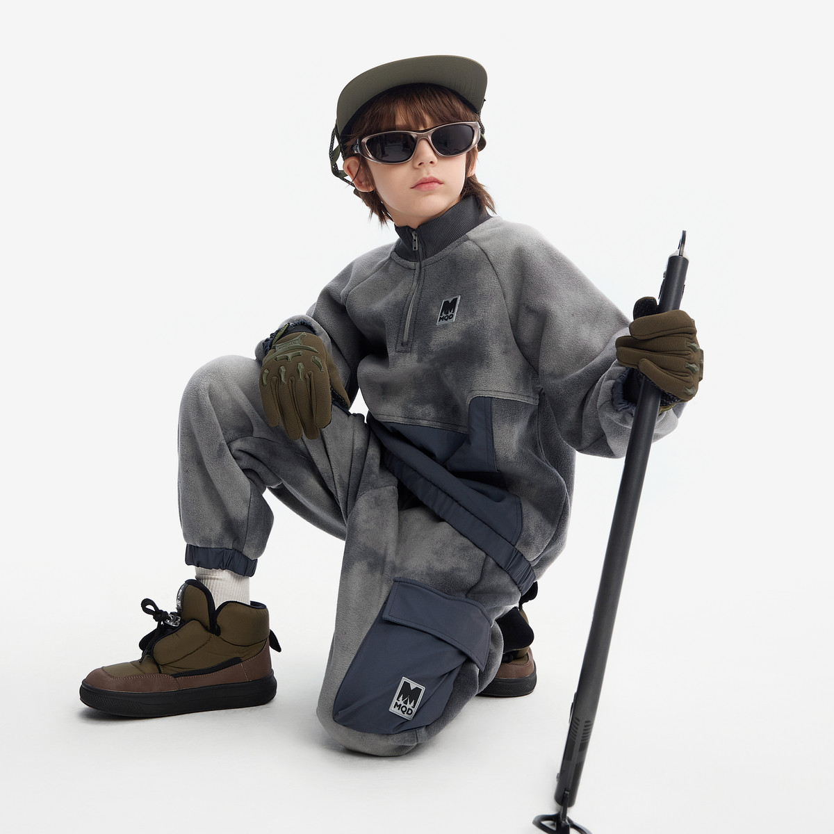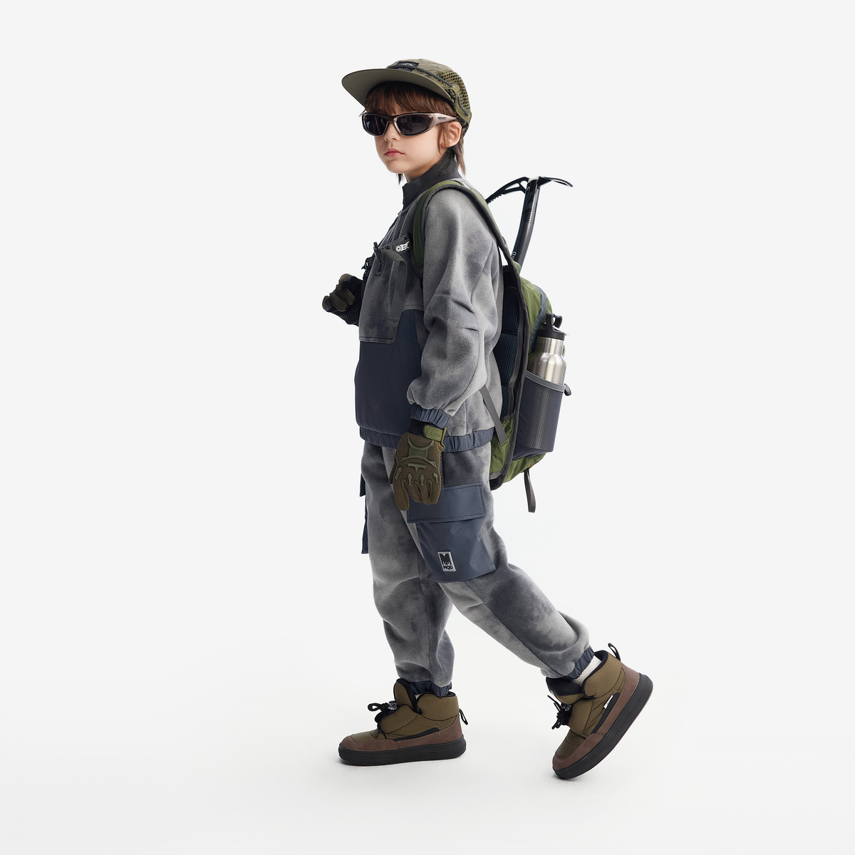MQD童装儿童卫衣套装冬季新款男童加绒加厚户外工装防风两件套