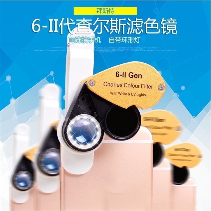 6代查尔斯滤色镜鉴定玉石翡翠染色珠宝30倍放大镜带led灯紫光彩宝