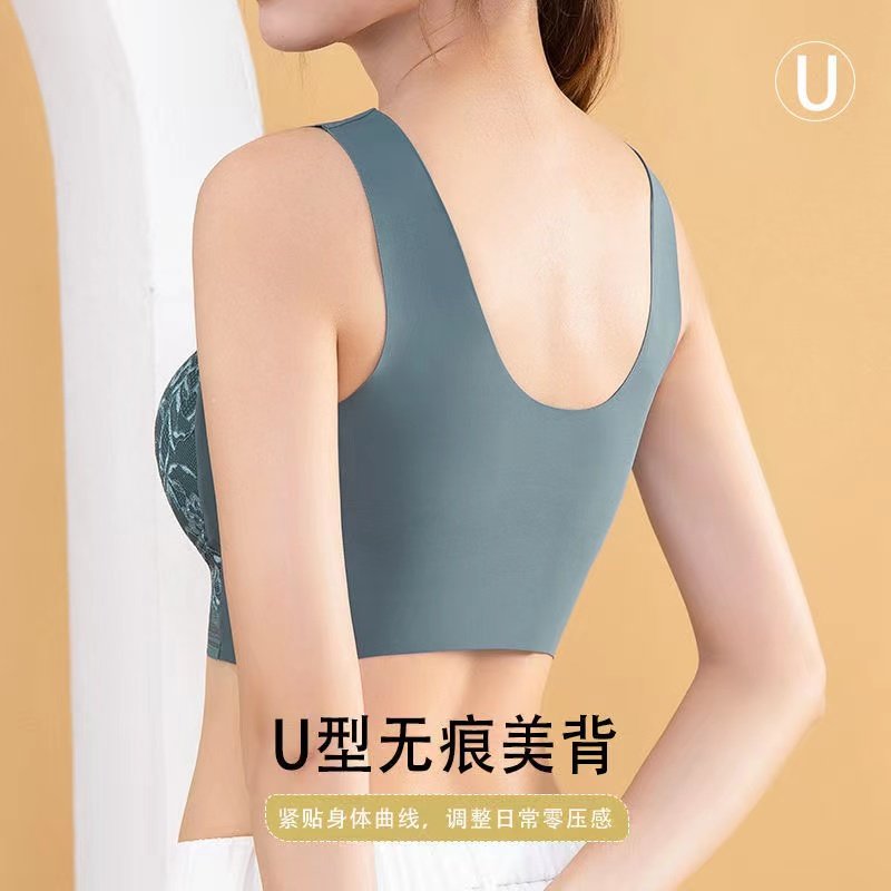 无钢圈薄款无痕文胸女大码内衣聚拢防下垂收副乳上托性感背心式