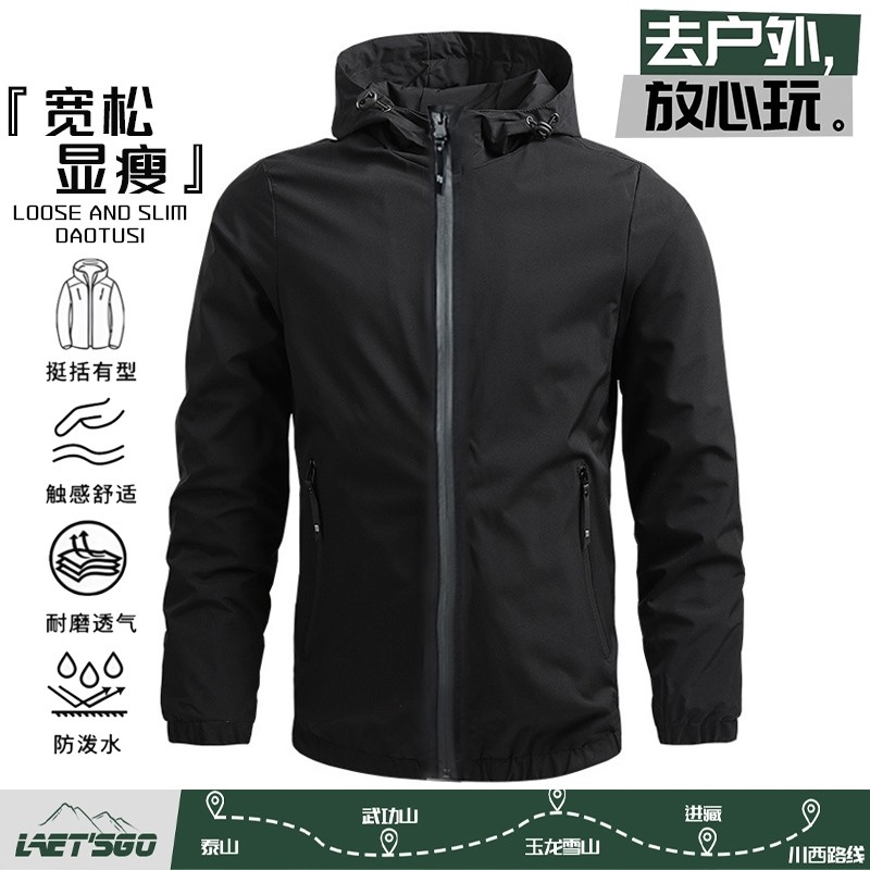 男士外套春秋季薄款连帽防风冲锋衣休闲运动上衣服潮男生风衣夹克