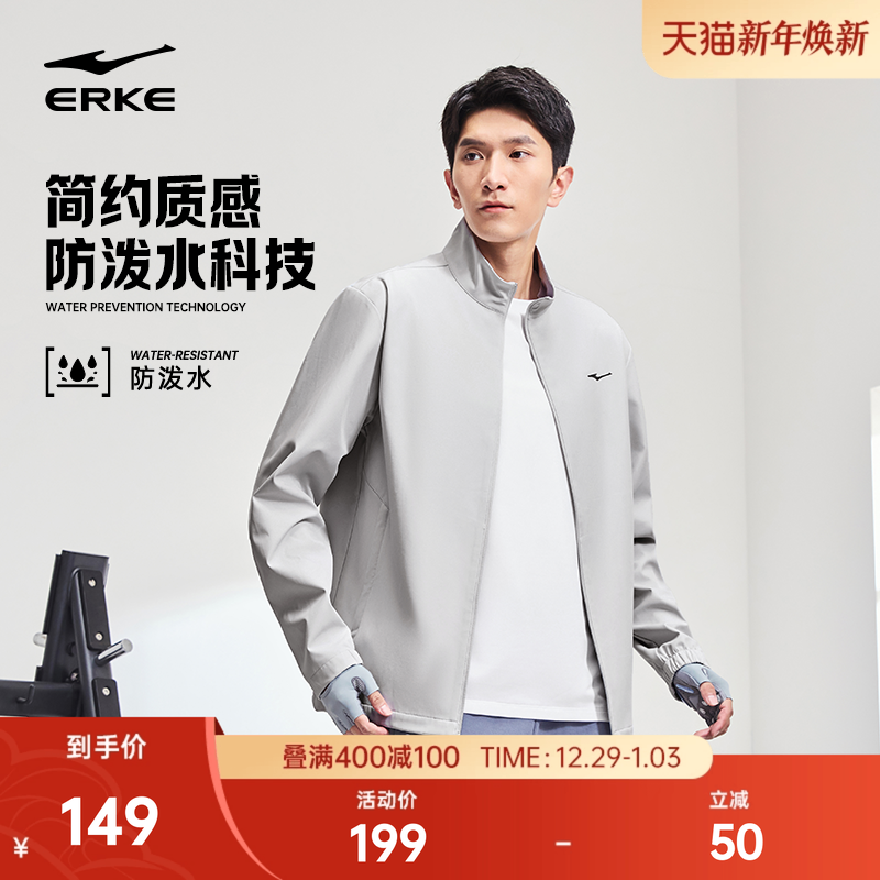 鸿星尔克男风衣2025冬季新款男士运动立领防泼水夹克男装男款外套