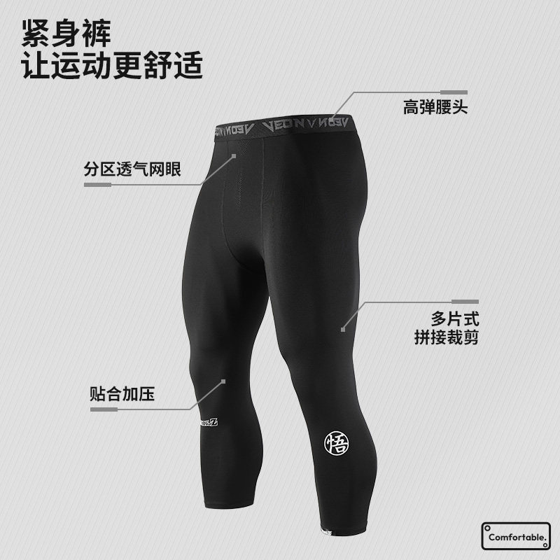 维动长裤龙珠联名七分篮球紧身裤男士运动健身透气高弹压缩打底裤