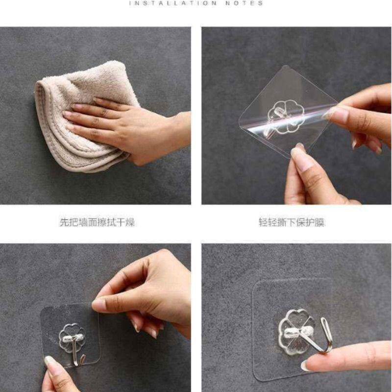 透明连排挂钩六连挂强力粘胶不掉落收纳壁挂无痕免打孔门后粘钩
