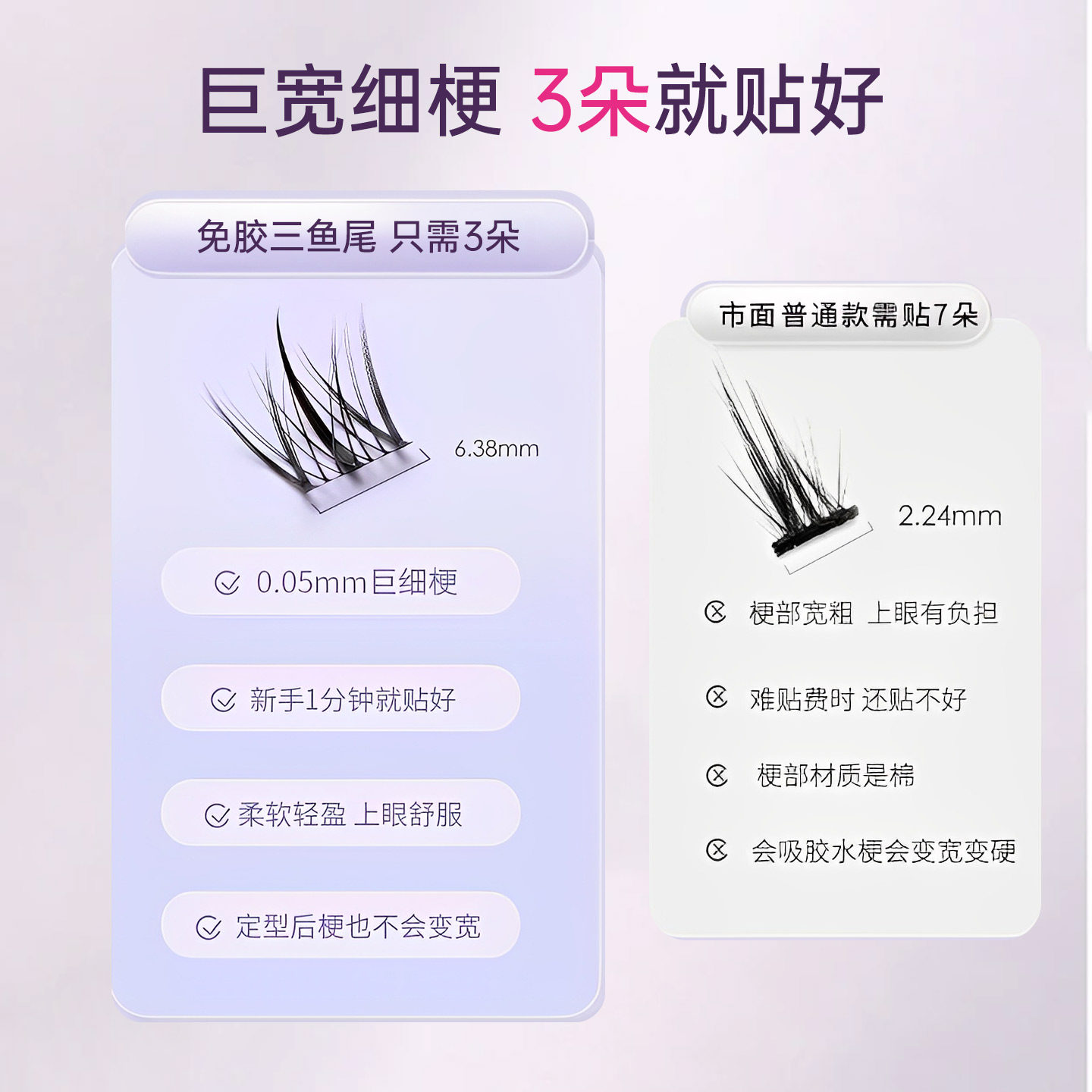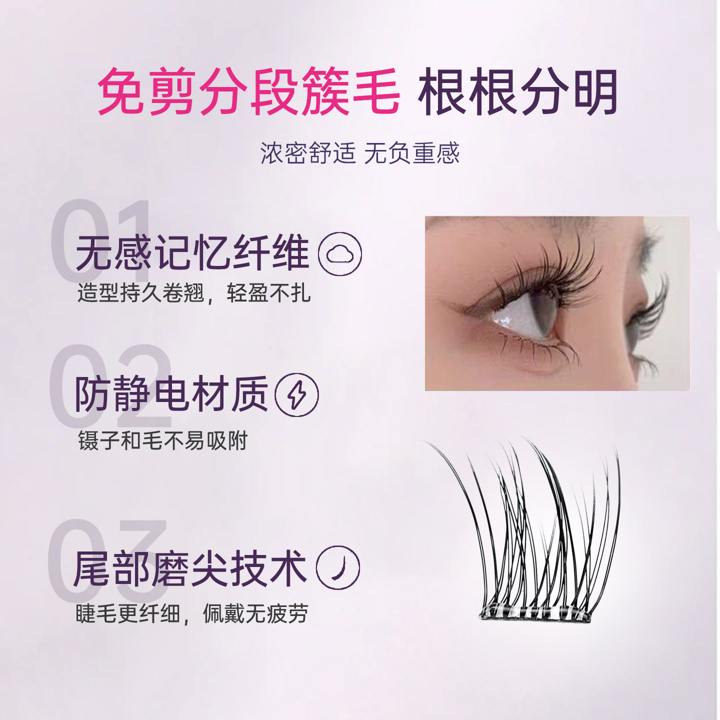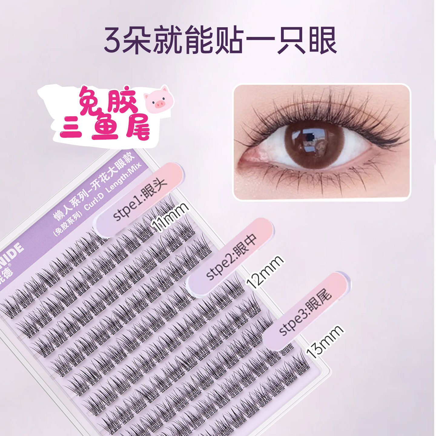 维妮德免胶懒人鱼尾假睫毛超自然三部曲分段式大容量自粘睫毛浓密