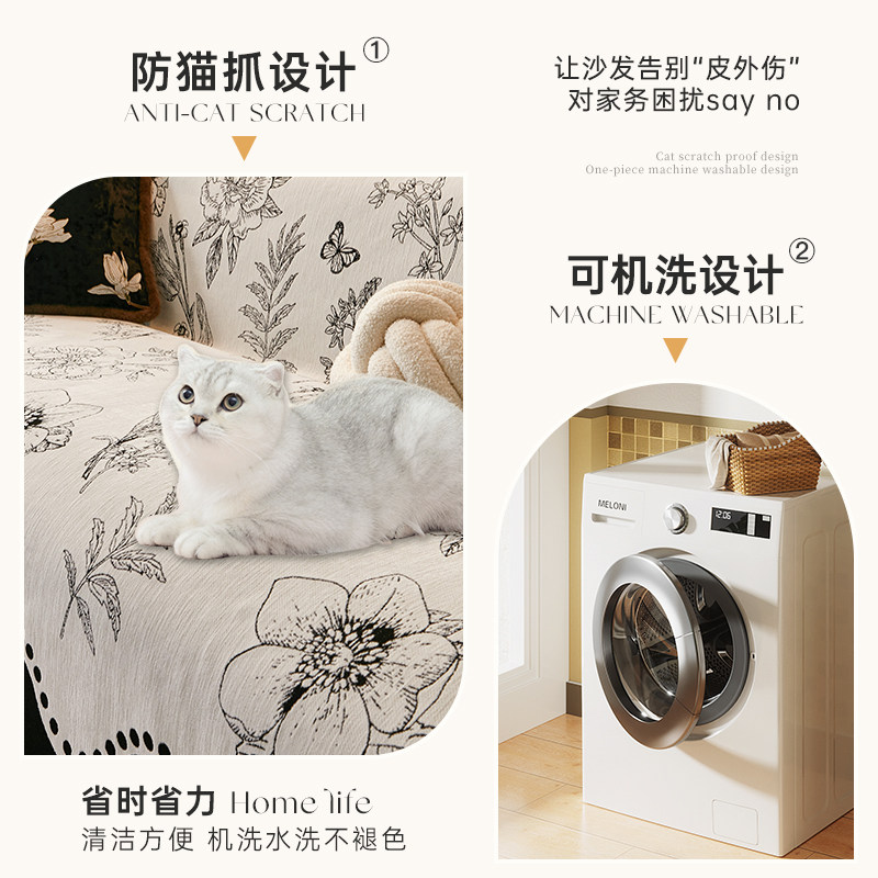 雪尼尔沙发垫四季通用可拆洗防滑防猫抓简约现代三座一贵妃沙发套