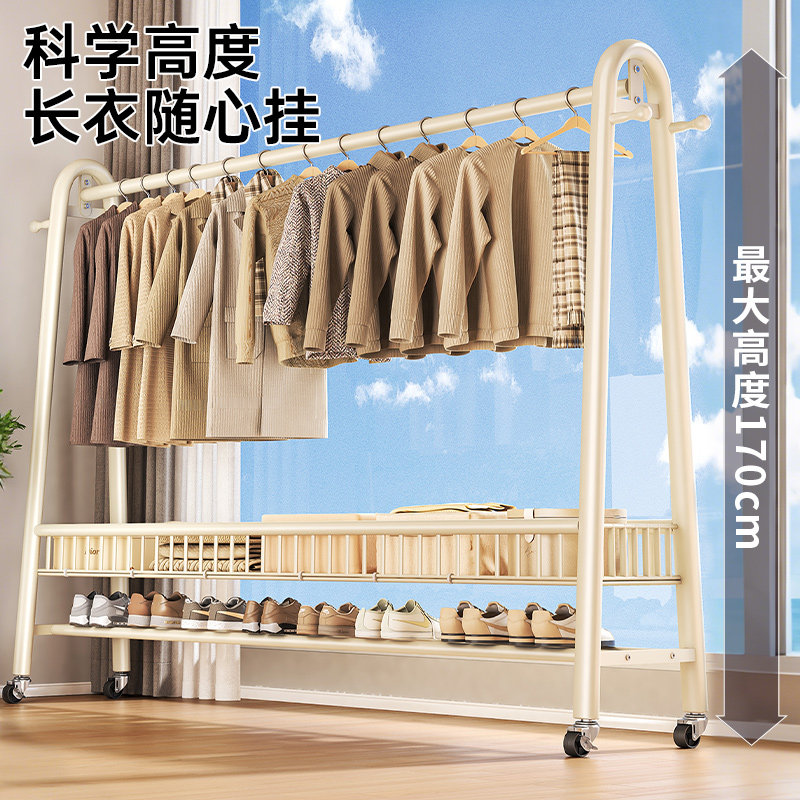 晾衣架落地家用可移动卧室凉衣架阳台挂衣服架子室内简易杆衣帽架