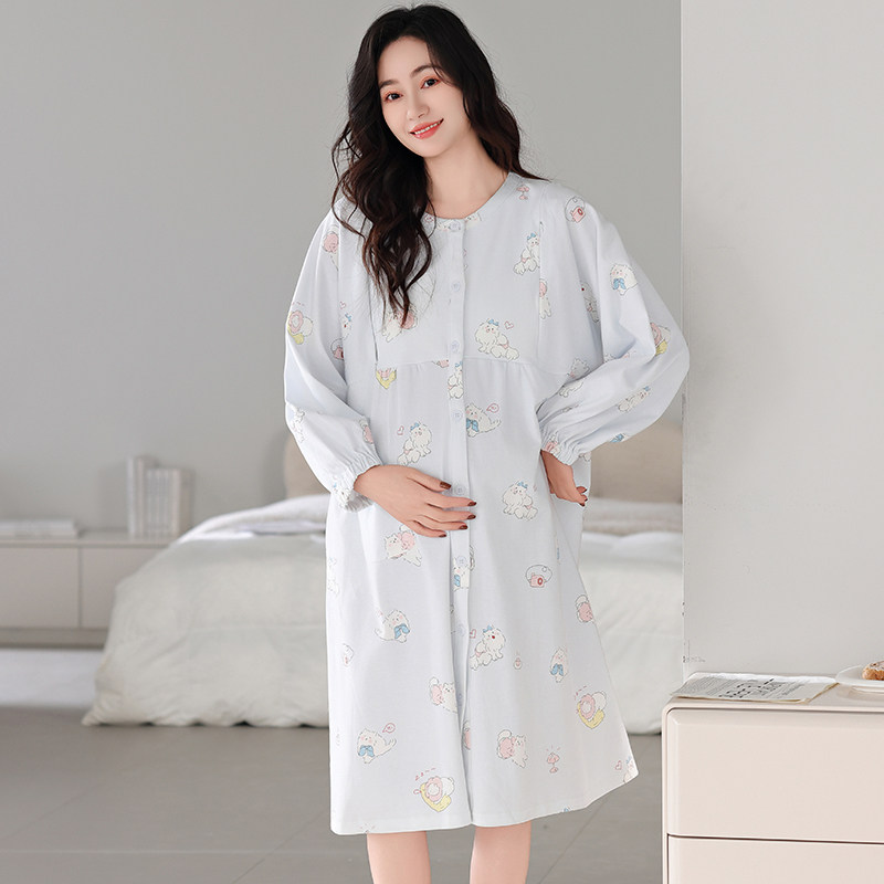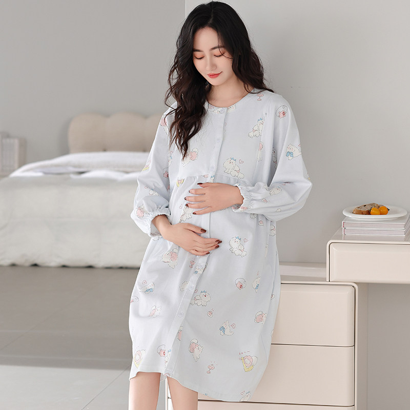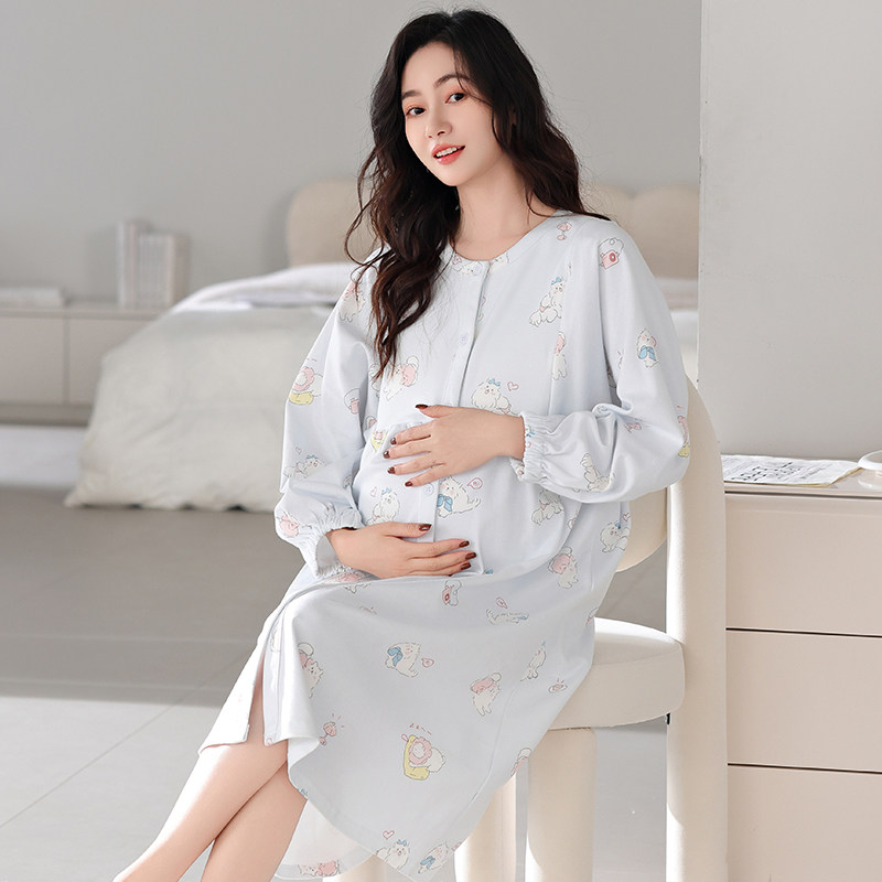 婧麒哺乳睡裙纯棉秋冬产后待产裙孕妇睡裙月子服产妇进产房连衣裙