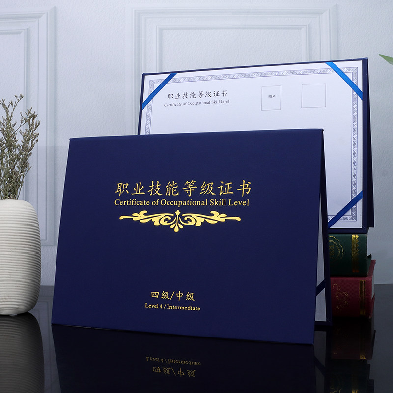 职业技能等级证外壳封皮技能等级证JNDJ封面培训合格证外壳通用保护壳定制磨砂烫金壳子A4内芯内页可打印定做