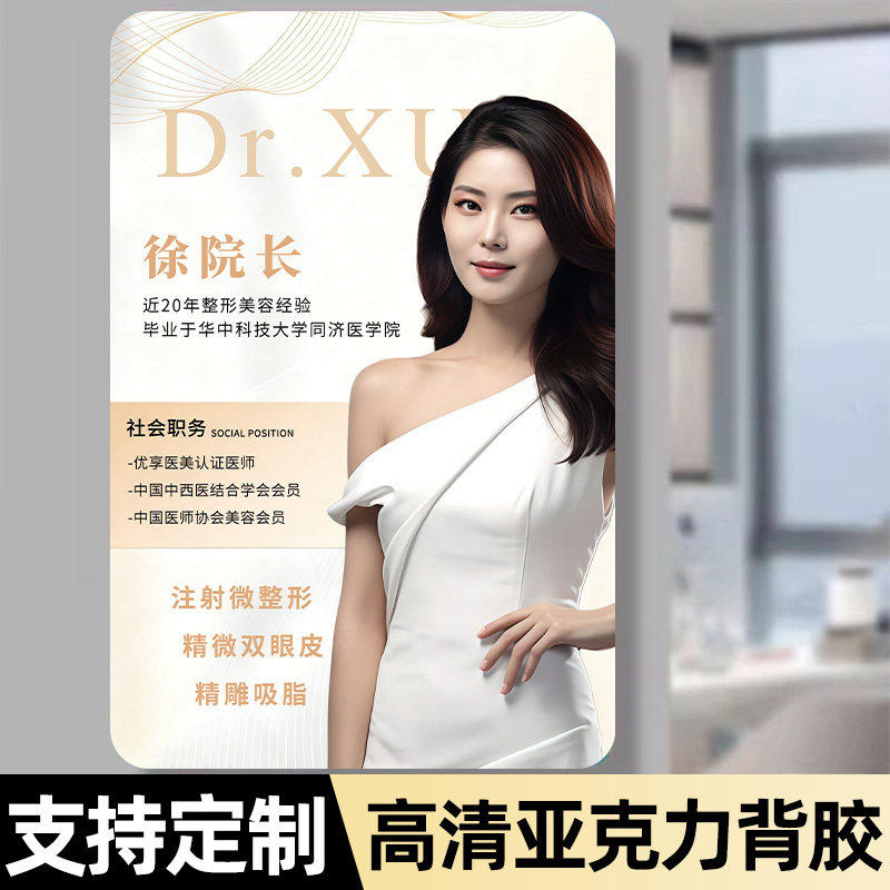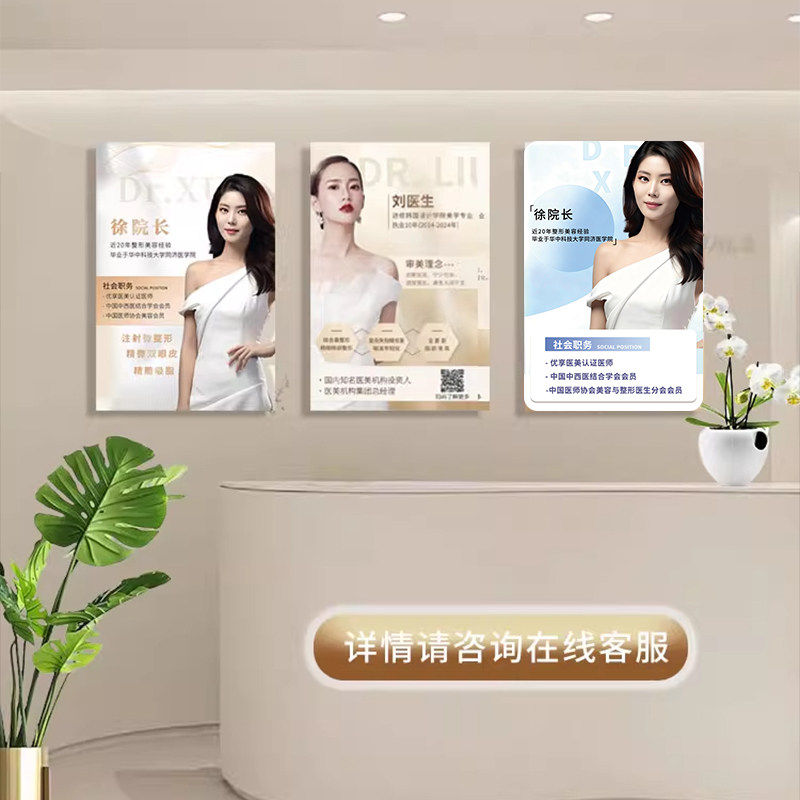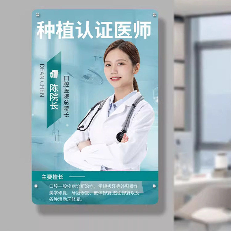 亚克力医生个人简介形象广告展示牌定制教师培训讲师美容理发口腔牙科医生美业纹绣企业履历高档简历展板挂墙