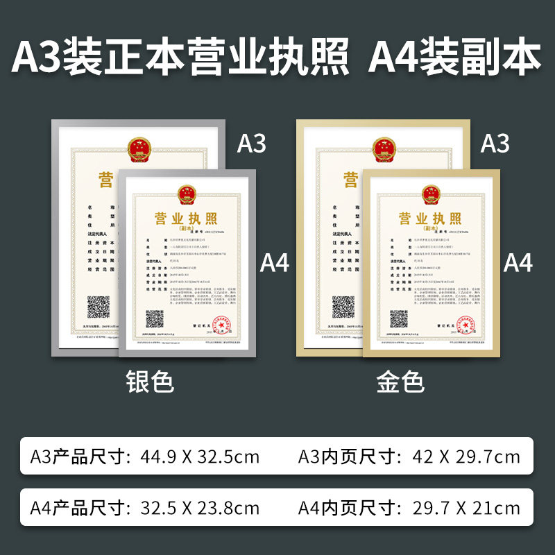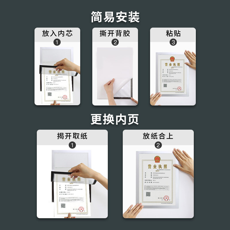 营业执照墙贴免打孔磁性贴A3工商正副本食品卫生许可证A4授权书保护套挂墙贴荣誉墙人像写真照片磁吸自粘画框