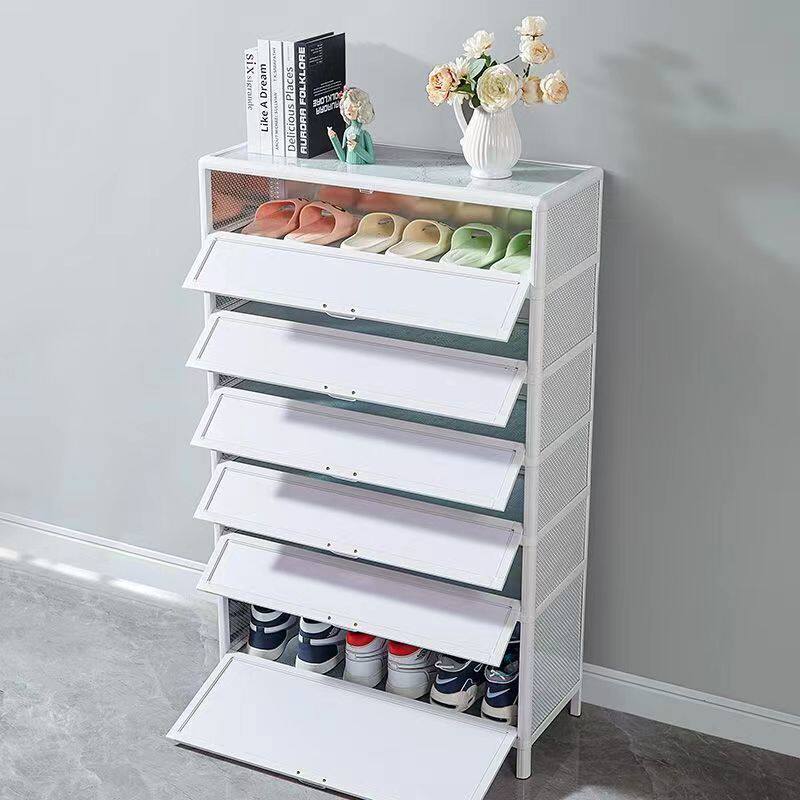 加厚钢制鞋柜门口家用一体靠墙多层储物柜入户落地大容量防尘鞋架