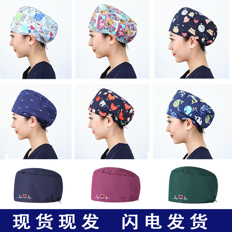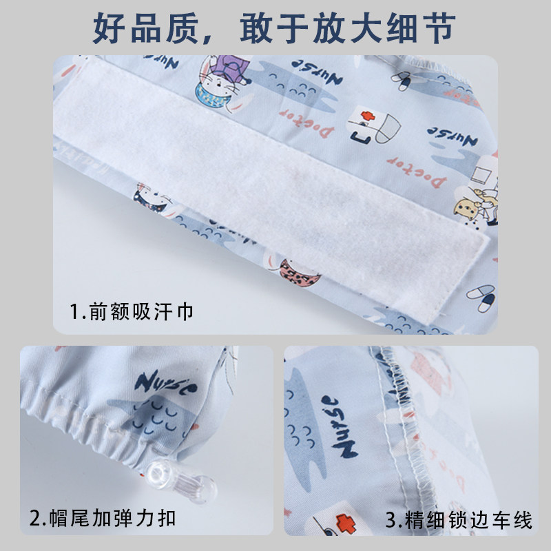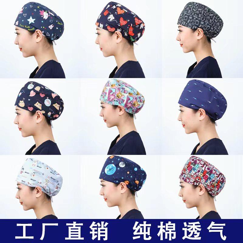 手术帽女纯棉可调节透气卡通印花图案手术室诊所工作口腔牙科帽子