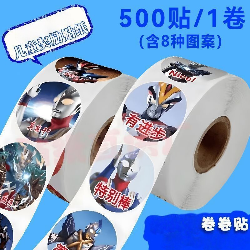 凹凸曼卷卷贴纸赛罗儿童圆形奖励贴幼儿园表扬贴封口贴手账贴超人