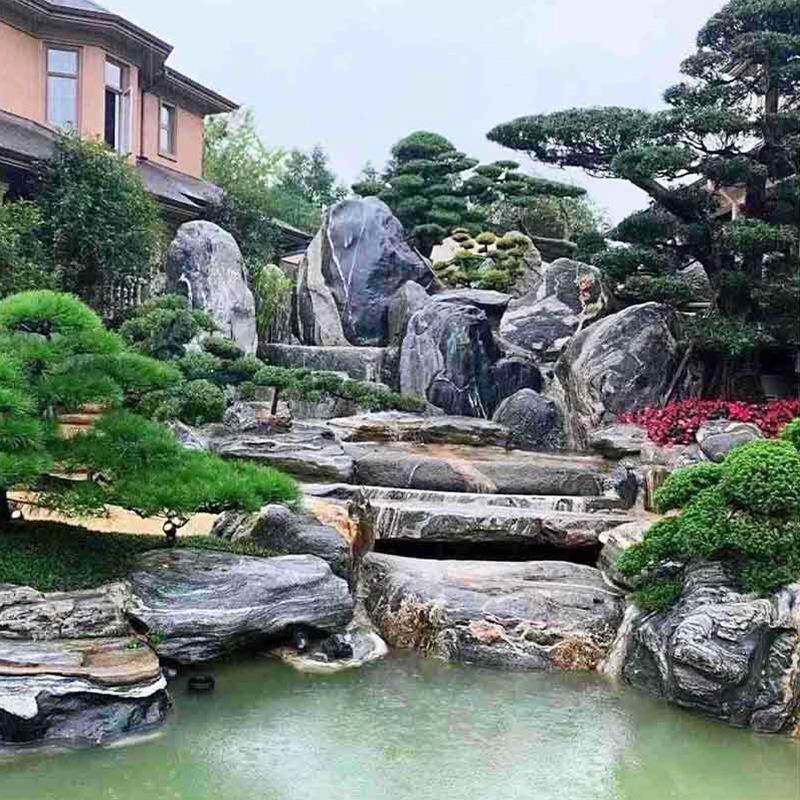 大型泰山石假山流水景观造景太湖石假山天然景观石庭院鱼池假山