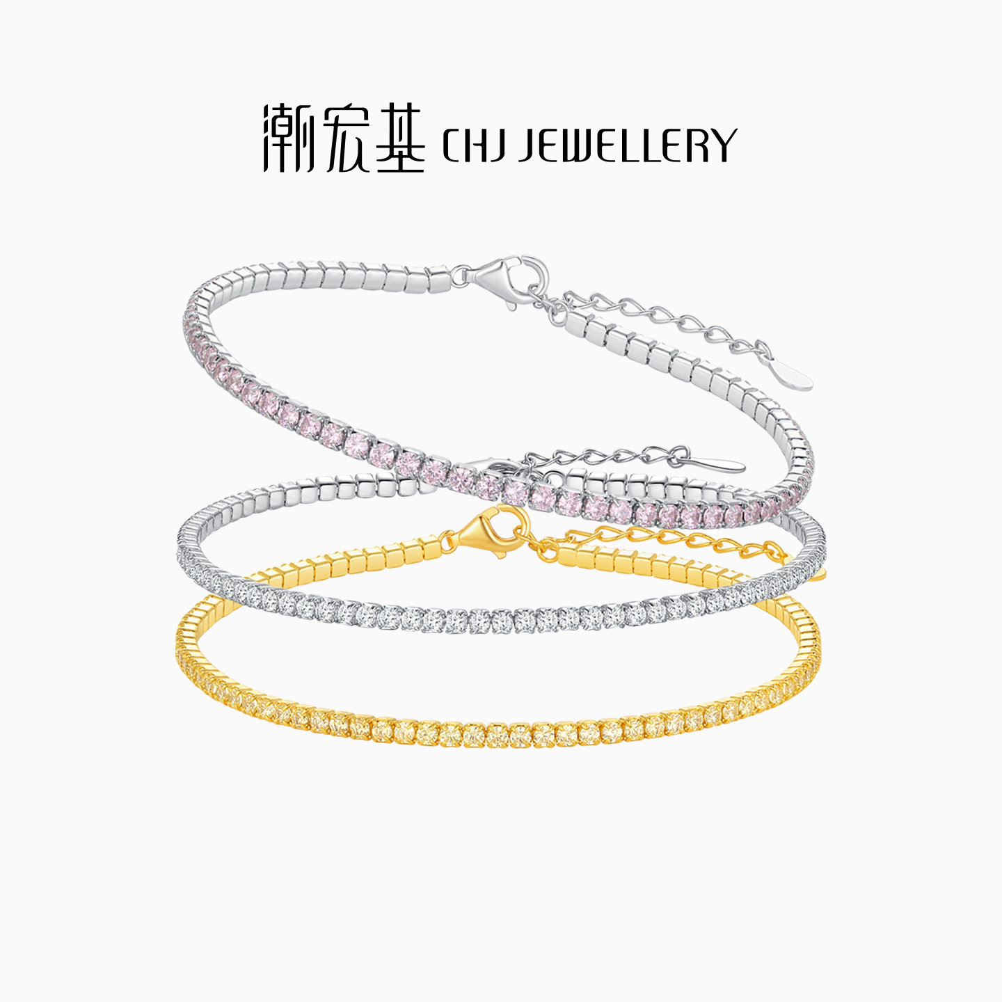 潮宏基玩色s925银手链银饰小方糖手饰潮酷闪耀高级感生日礼物