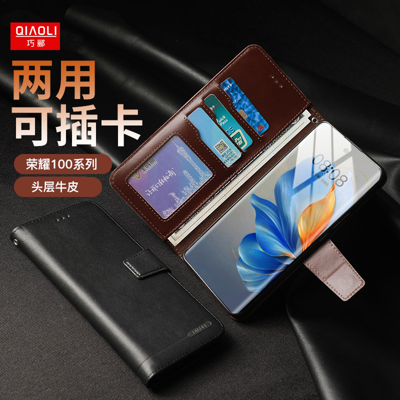适用荣耀500pro真皮手机壳400荣耀200pro翻盖式GT防摔Winrt保护套100钱包插卡GTpro商务皮套300ultra外壳Win