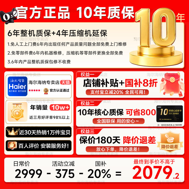 【国补8折】海尔空调1.5匹家用一级能效变频卧室挂机冷暖E1旗舰店