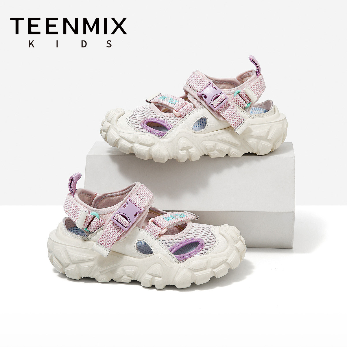 天美意童鞋2026夏季新款软底透气网面鞋女童男童运动鞋休闲凉鞋
