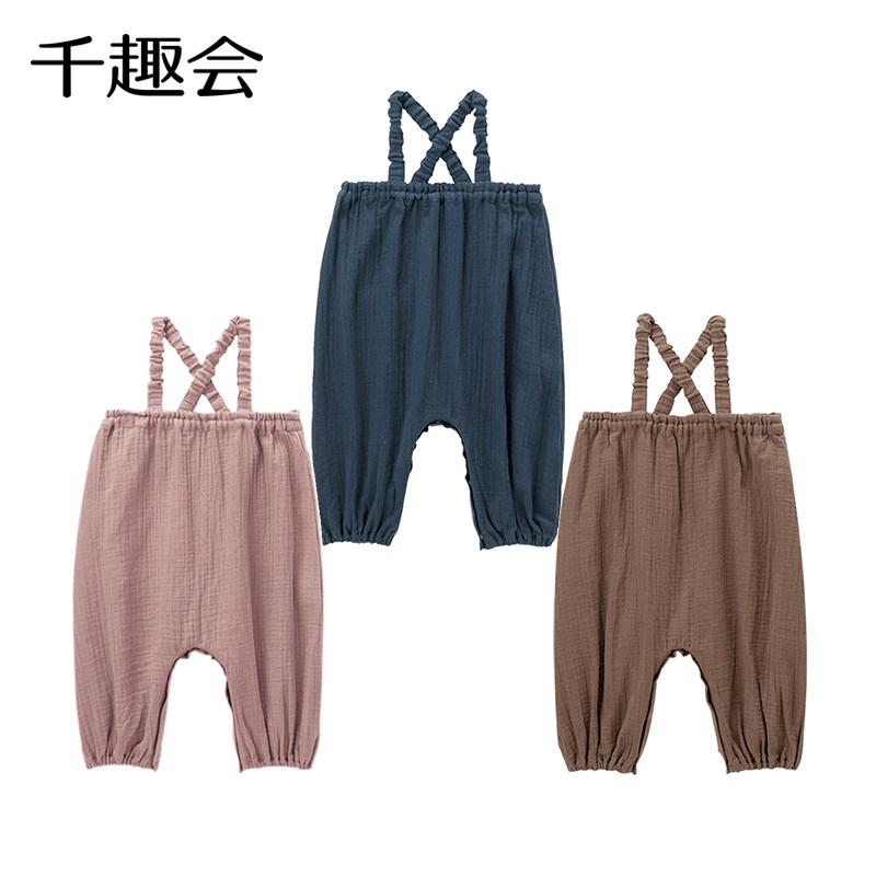 千趣会春秋款男童柔软透气棉质背带裤洋气宽松休闲女童哈伦裤