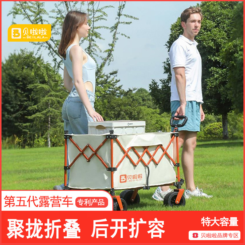 贝啦啦露营车户外可折叠手推野餐营地超大拖车拉杆摆摊小推车子