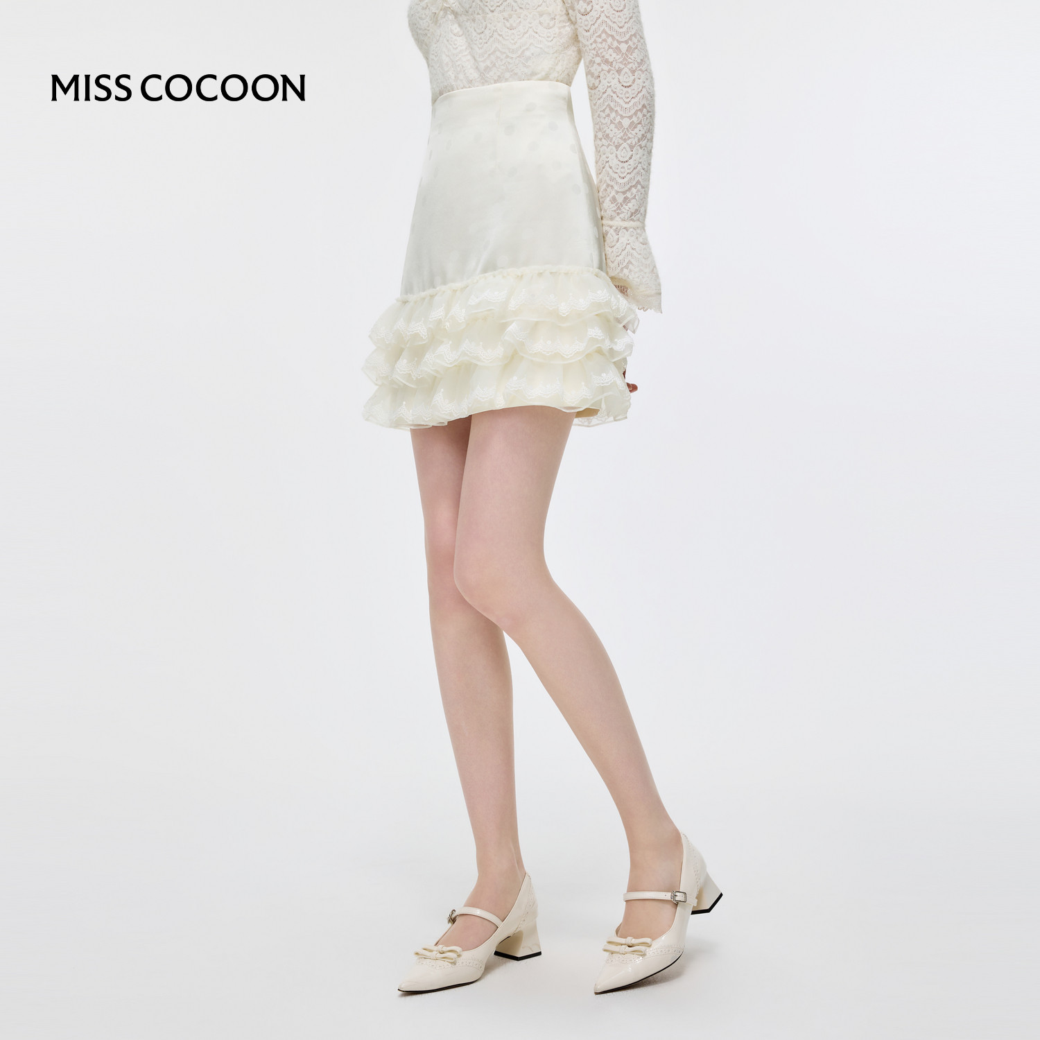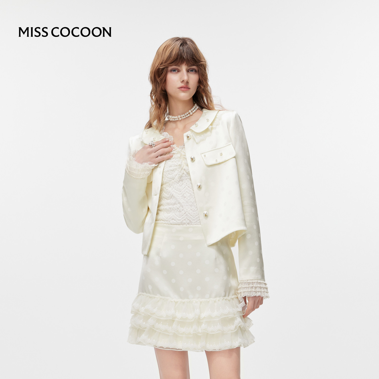 MISSCOCOON可可尼缎感波点连衣裙套装女2026春新款娃娃领醋酸外套