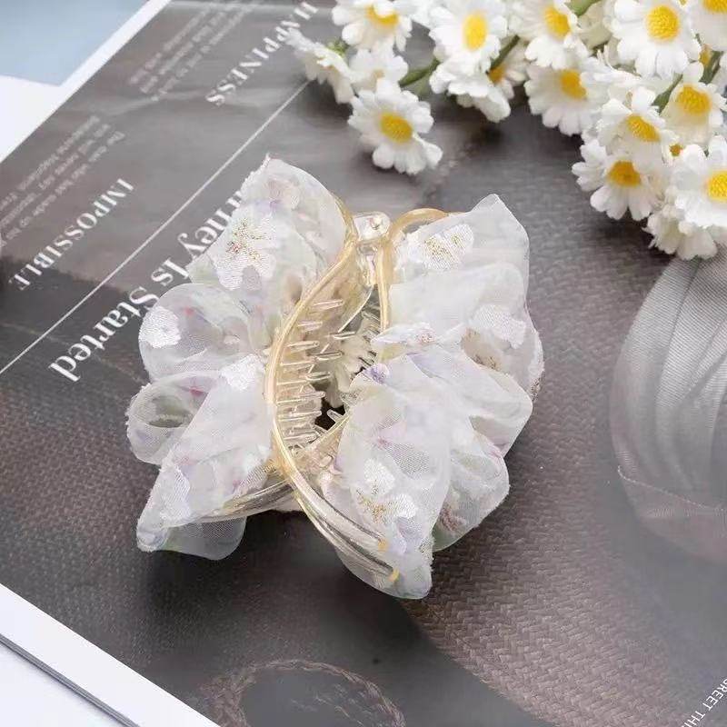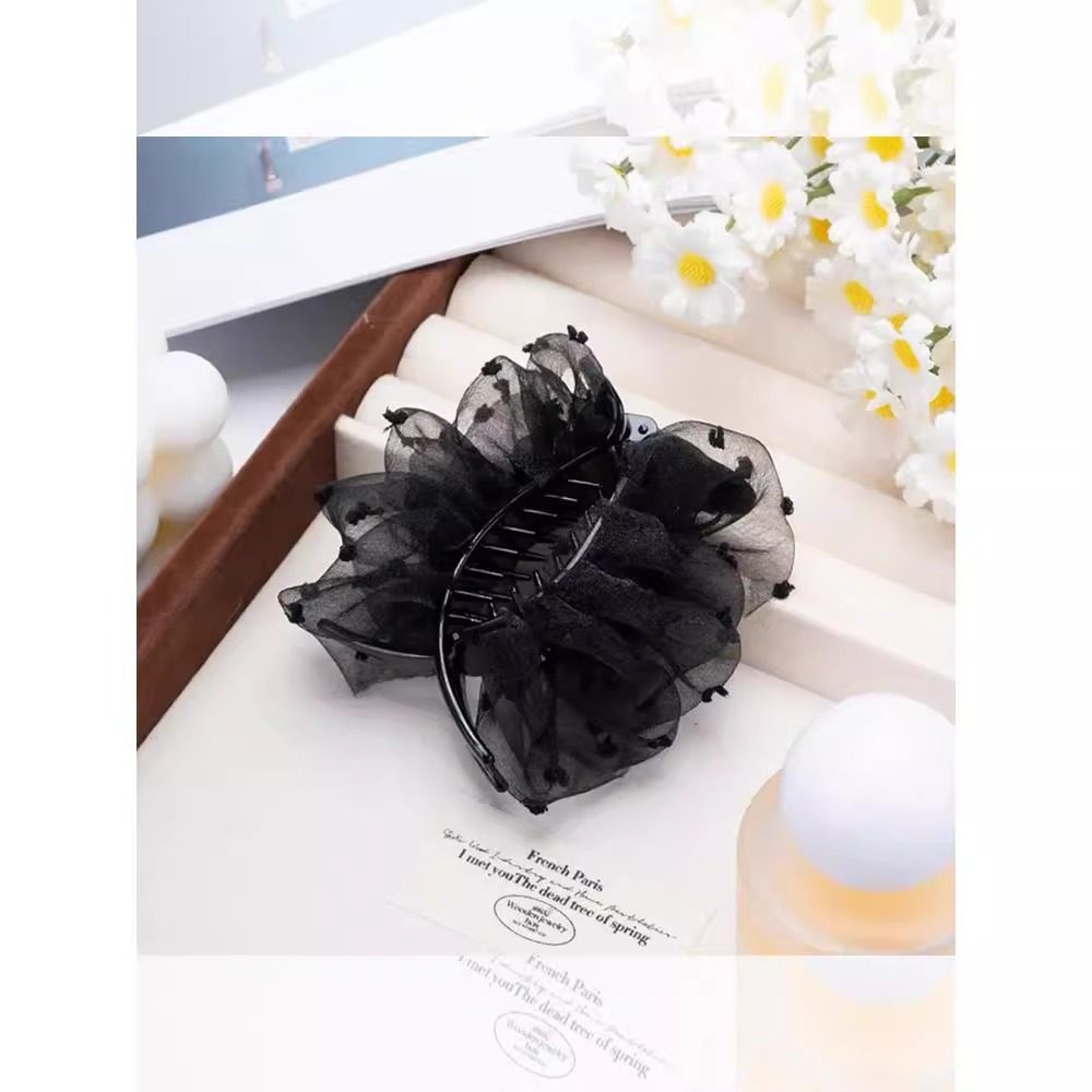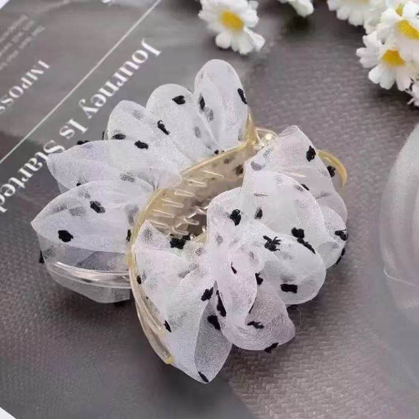 2025年印花雪纺皱抓夹女大号高级感新款发夹后脑勺盘发鲨鱼夹发饰