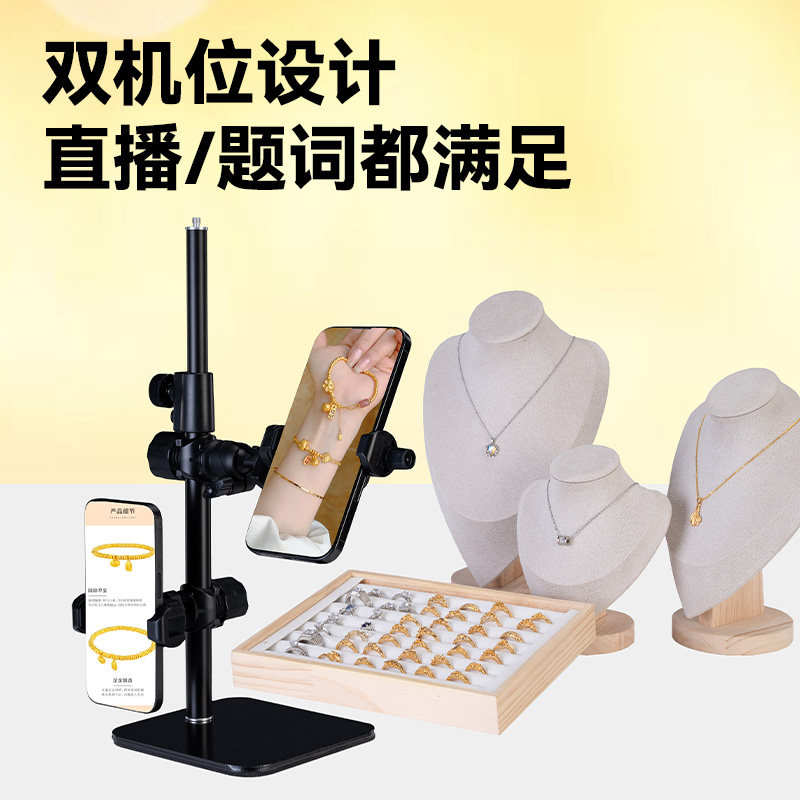 手机直播支架散热器一体升旗式桌面黄金银饰手播抖音卖货专用便携式金属底盘直播美颜补光灯双机位无线麦克风