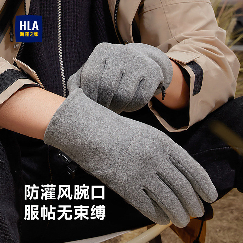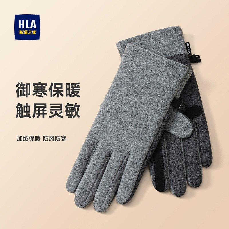 海澜之家手套男士2025新款秋冬保暖加绒户外骑行运动布艺防滑触屏