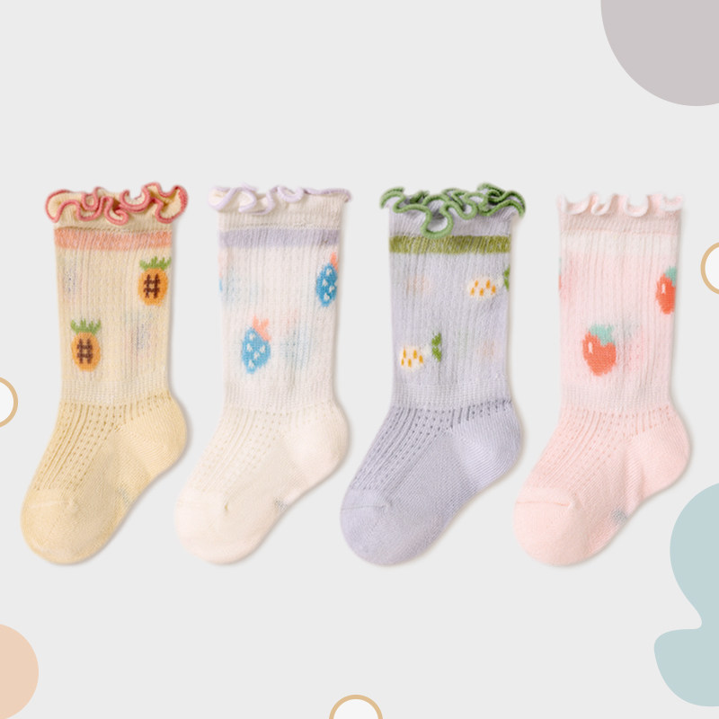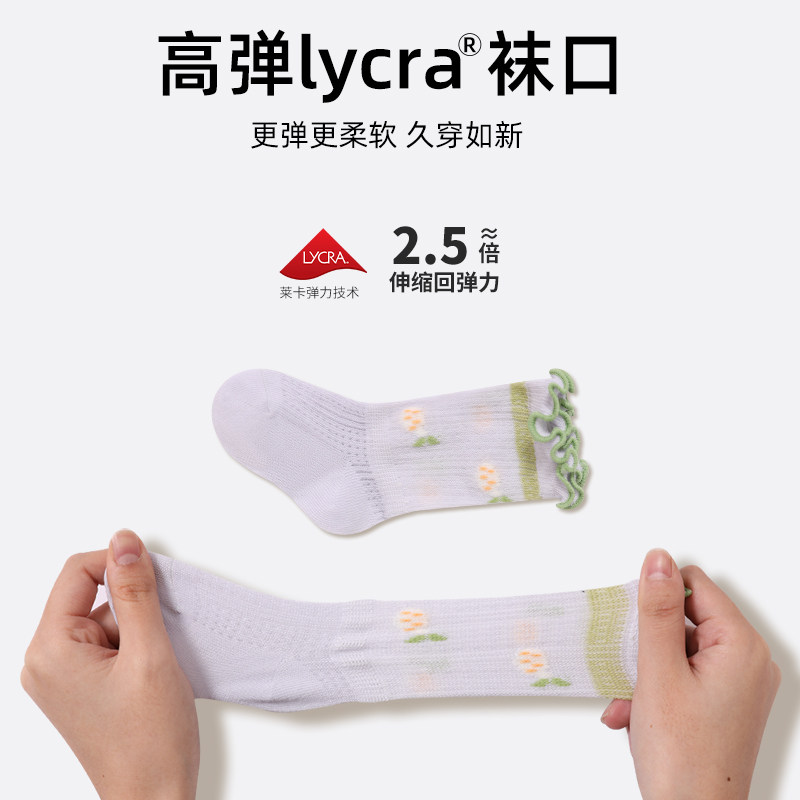 贝肽斯婴儿袜子春夏网眼透气薄款棉袜女童宝宝中筒花边袜子夏季S