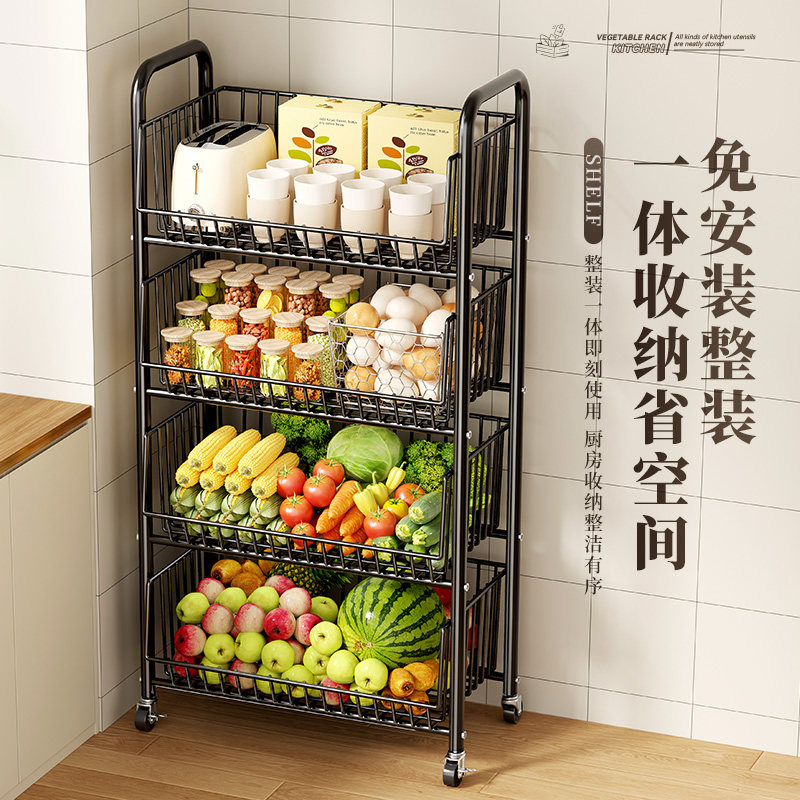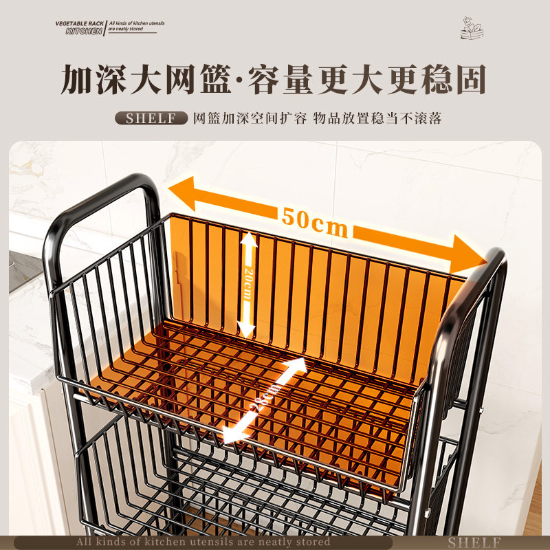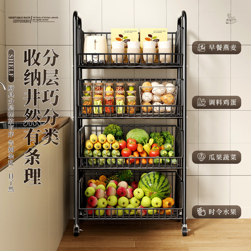 厨房置物架落地多层可移动家用小推车放蔬菜篮子菜筐玩具收纳神器