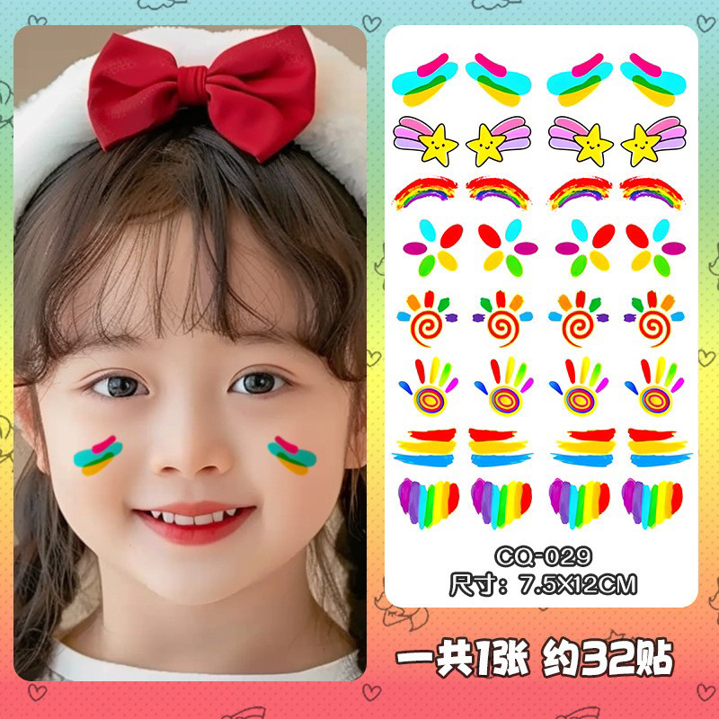 六一儿童节妆容贴彩色纹身贴彩虹表演拍照道具街舞舞台妆脸部贴纸