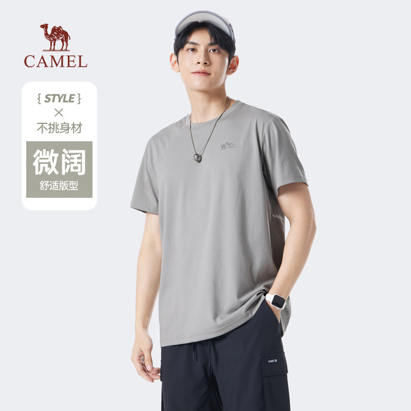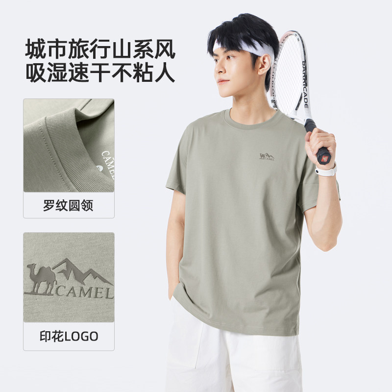 骆驼男装山系速干短袖t恤男夏季2025新款户外休闲印花半袖体恤