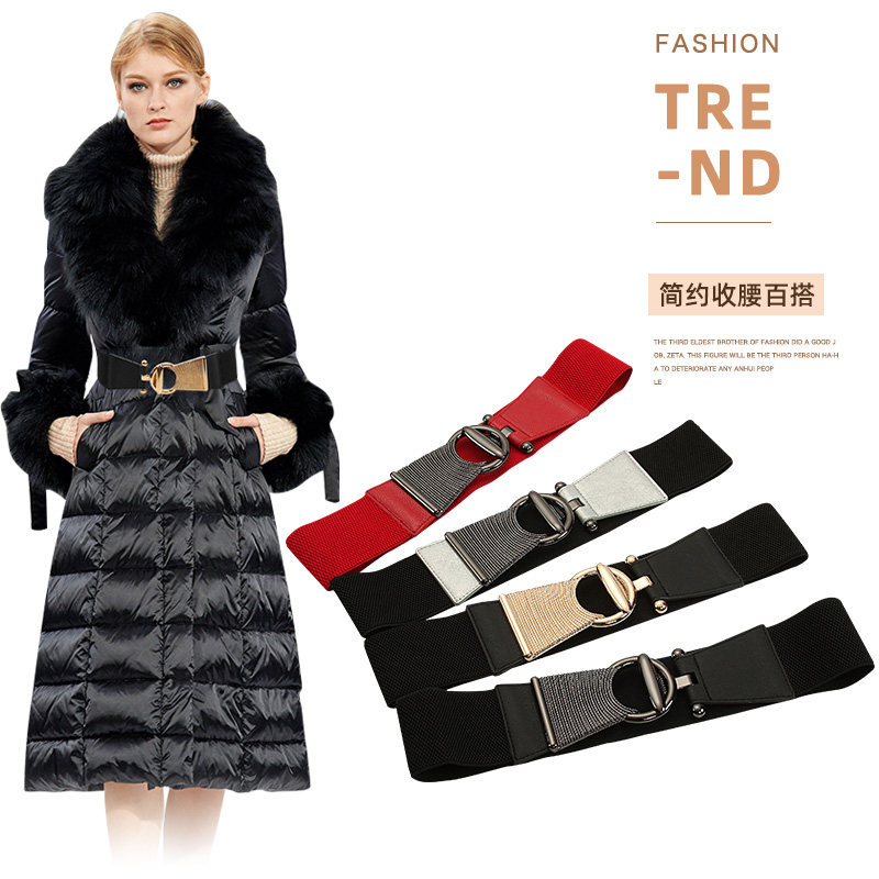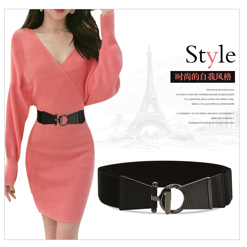 韩版时尚松紧宽腰带皮带女简约百搭配连衣裙裤子装饰帆布腰封休闲