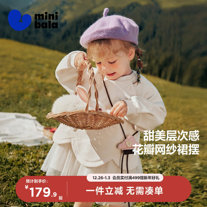 迷你巴拉巴拉女童儿童网纱公主连衣裙宽松柔软拼接裙子2025秋新款