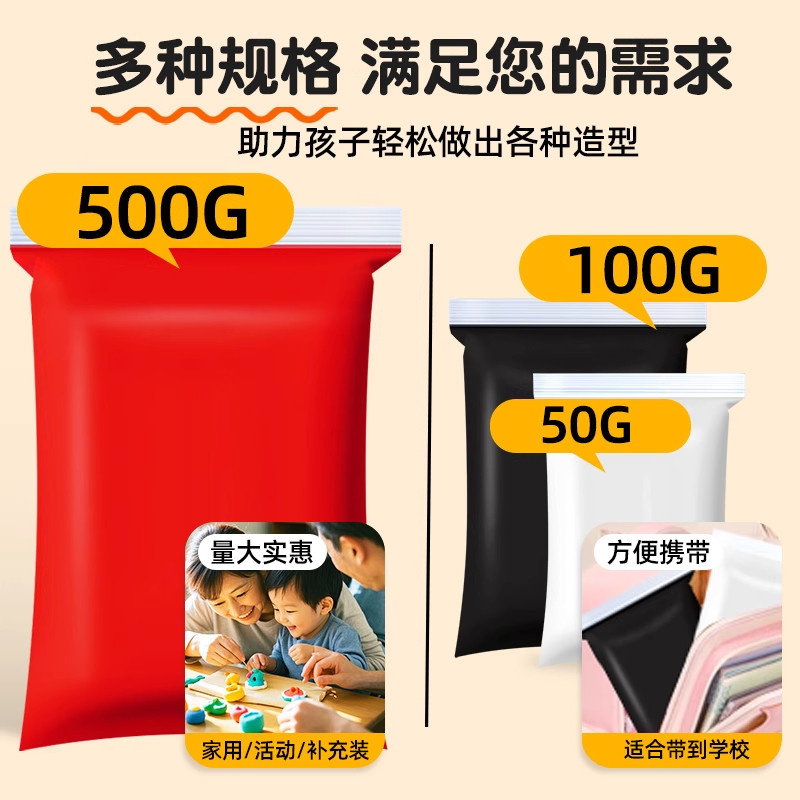 500g克大包装超轻粘土幼儿园专用无毒白色黏土儿童橡皮泥小学生安全无毒彩泥食品级手工diy材料超级太空泥