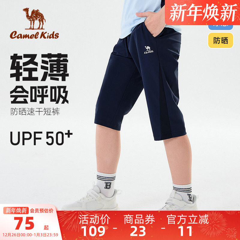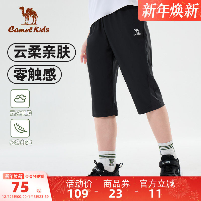 小骆驼儿童速干裤薄款2025夏季新款裤子中大童七分运动裤男童长裤