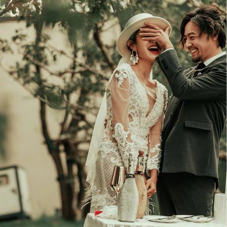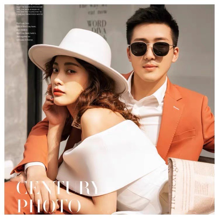 森系旅拍婚纱摄影 写真拍摄主题影楼黑丝带白礼帽 街拍道具爵士帽